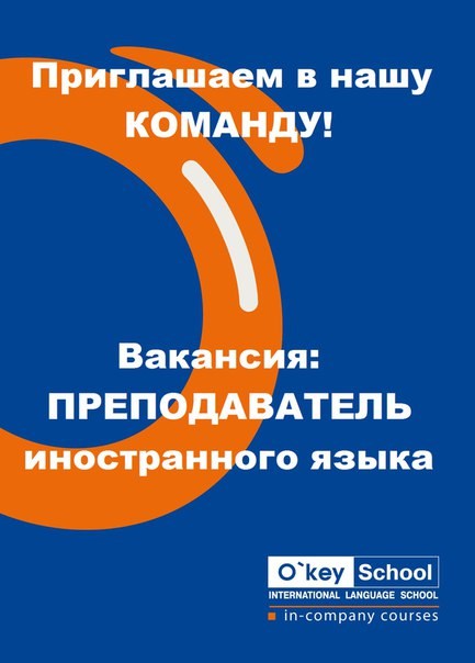 В команду Международной языковой школы «O`key» требуется преподаватель иностранного языка, которому будет поручена важнейшая миссия: ОБУЧАТЬ, МОТИВИРОВАТЬ, ВДОХНОВЛЯТЬ!